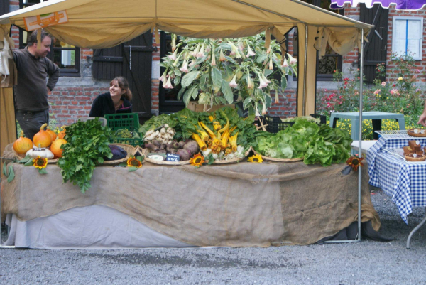 Marché de producteurs et d'artisans locaux à Hon-Hergies (France)