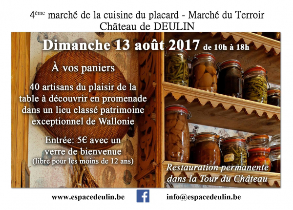 Quoi : 40 artisans du plaisir de la table vous présentent leur savoir-faire dans le cadre magnifique du Château de Deulin. Il y en aura pour tous les goûts : pain, fromages, salaisons, huiles, produits safranés, foie gras, bières, miel,...