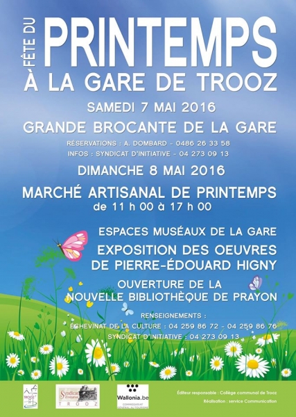Quoi : Pour fêter le printemps, la commune et le syndicat d'initiative de Trooz organisent un grand marché de printemps : bourse aux plantes et aux fleurs, artisans, dégustations, bar et petite restauration vous permettront de finir la fête des mamans dans une ambiance chaleureuse. Le marché se déroule sous châpiteau, donc même si il pleut vous pouvez venir ;o)