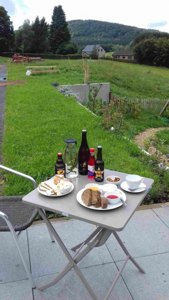 Tous les dimanches, la Bergerie de la Lienne ouvre sa terrasse. Profitez de la magnifique vue sur la campagne entourant la ferme en dégustant une bonne assiette des fromages maison et en sirotant une boissons locales (bières, limonades,...).